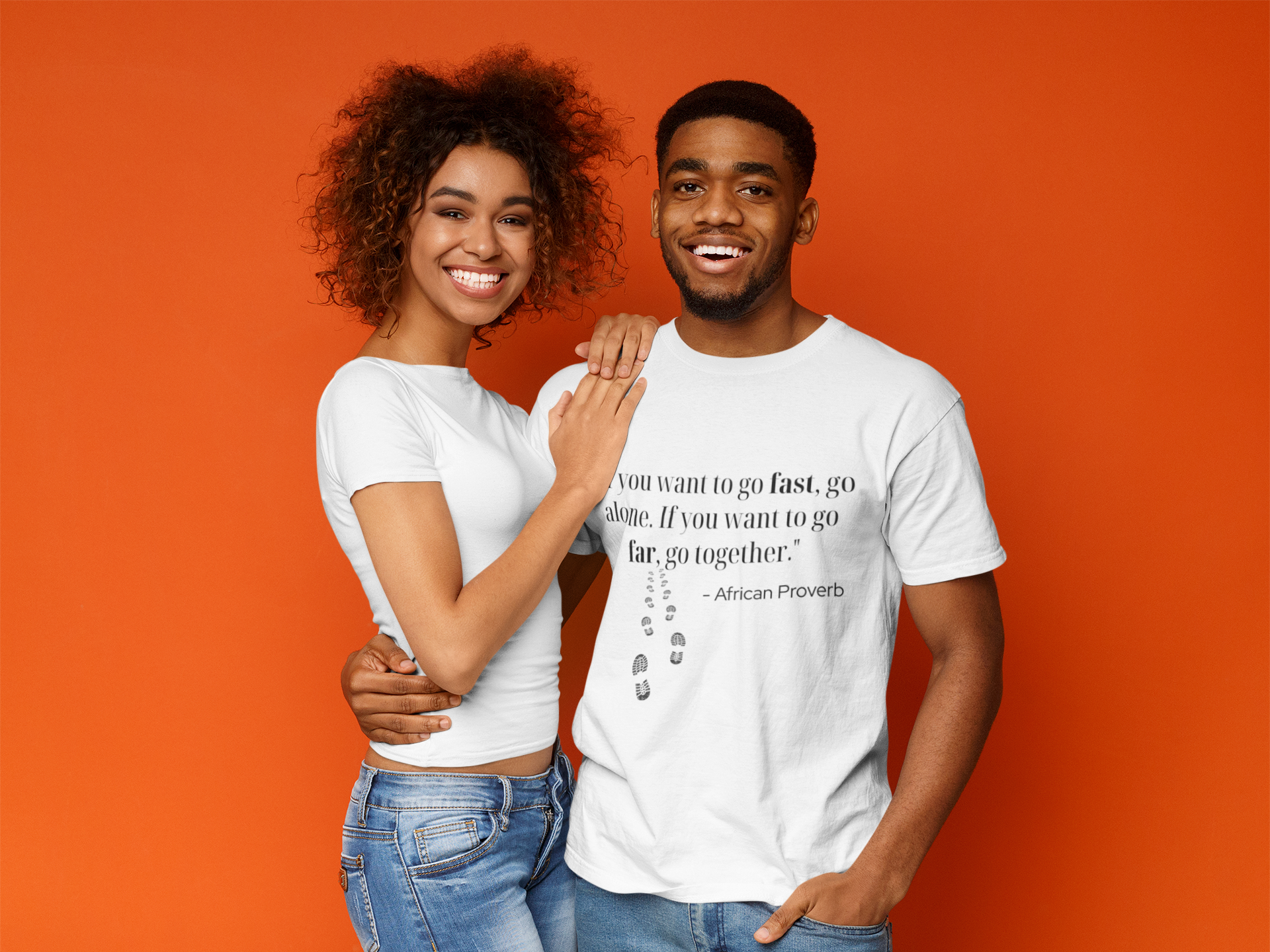 African Proverb Unisex T-shirt - 'If you want to go fast, go alone If you want to go far, go together'