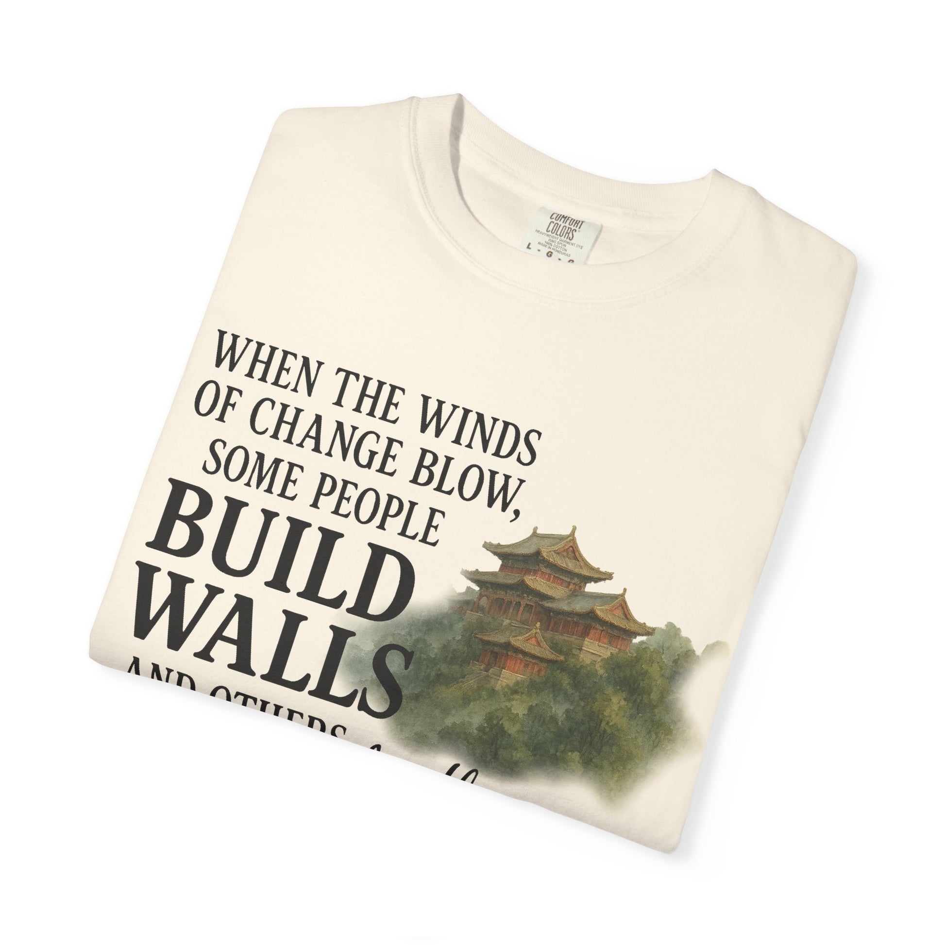 "When the Winds of Change Blow, Some People Build Walls and Others Build Windmills" Chinese Proverb T-Shirt - Ancient Wisdom on Embracing Change