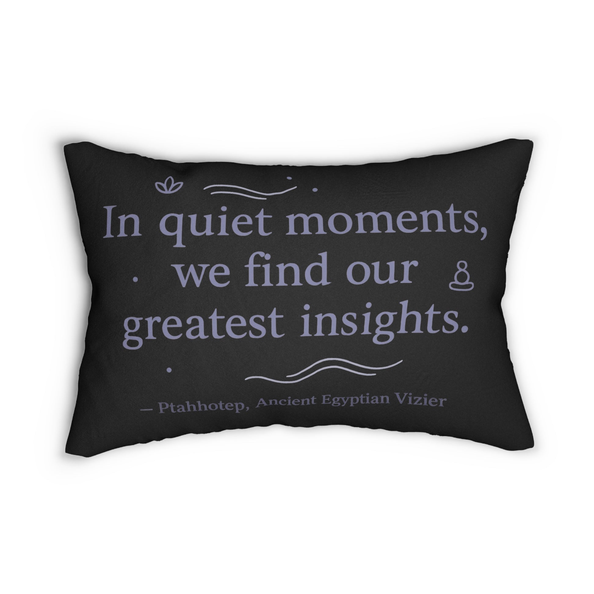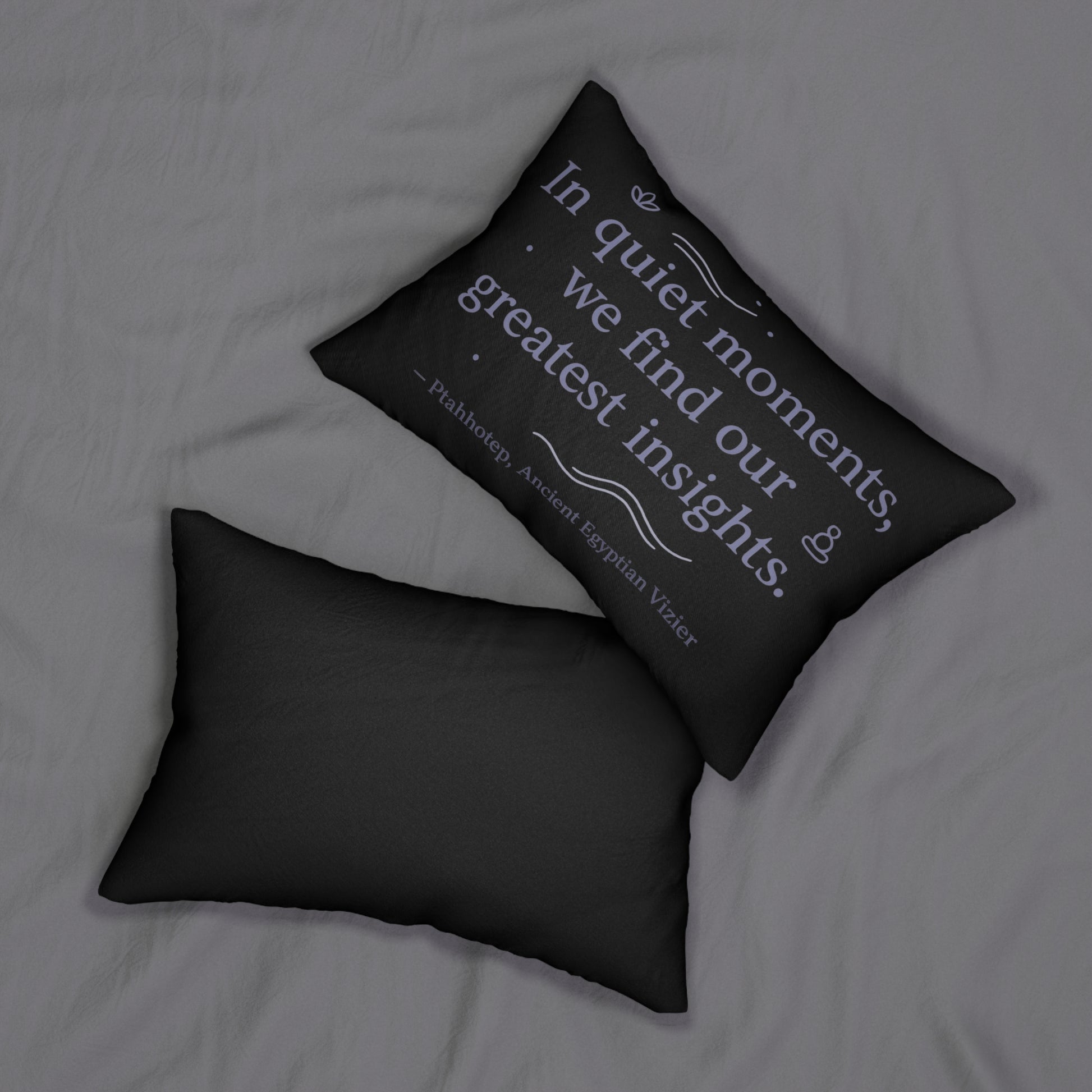 Transform your relaxation into a practice of ancient wisdom. This beautifully crafted lumbar pillow features timeless Ancient Egyptian insight about the power of contemplation: "In quiet moments, we find our greatest insights" - perfect for creating a sanctuary of comfort and philosophical reflection.